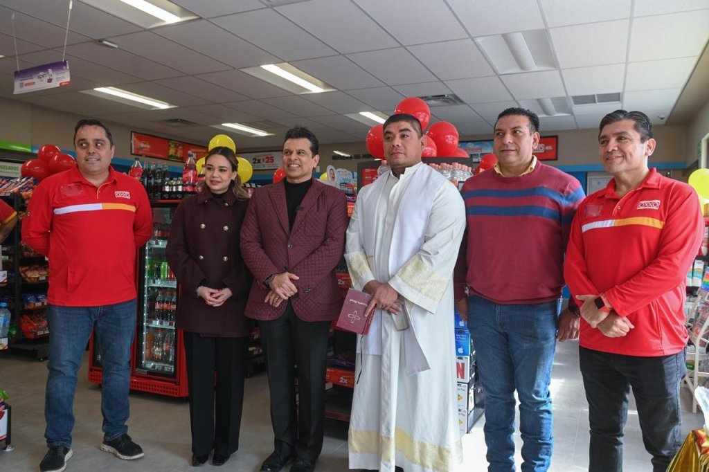 Gattás Báez asistió acompañado de su esposa Lucy de Gattás y equipo de colaboradores al evento presidido por el gerente de plaza José Antonio Lara, a quién agradeció la confianza por invertir en la capital al inaugurar la primera tienda OXXO del año y la 250 en la plaza Victoria.