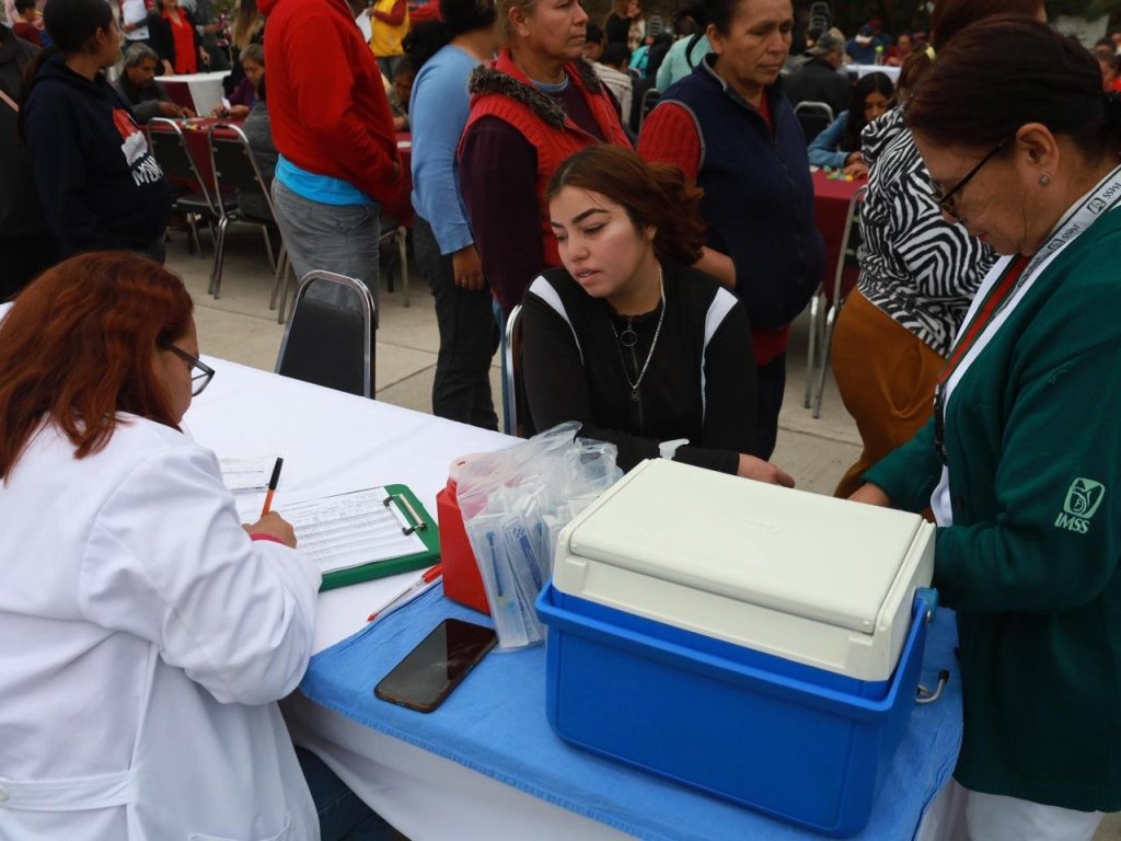Con integrantes del Gabinete Municipal y Voluntariado, instalaron en la cancha pública módulos de atención ciudadana para brindar asesoría en trámites de pago de predial, solución de problemas de agua y drenaje, solicitud de empleo, atención médica, vacunación y expedición de la tarjeta de descuento AMA.