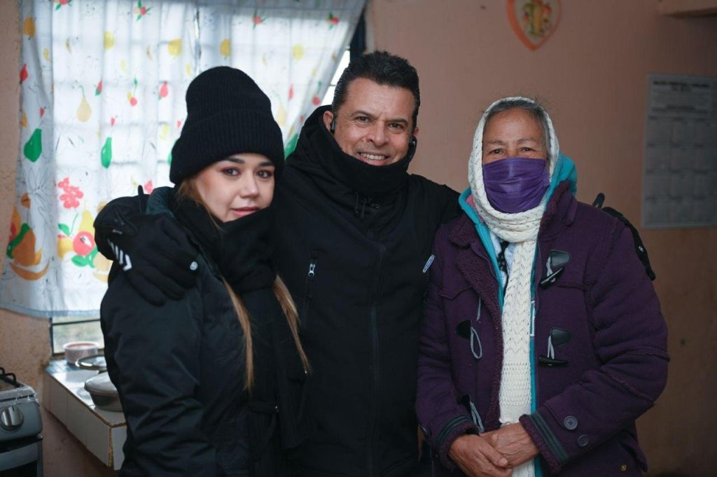 Privilegiando la política humanista del gobernador Américo Villarreal Anaya, Lucy y Lalo se trasladaron con personal de la Secretaría de Bienestar a la colonia San Marcos 2, asentada en la parte alta de la ciudad, para compartir con sus habitantes pan, café y avena, suministrar productos de la canasta básica, cobijas y prendas para protegerse de la onda gélida.