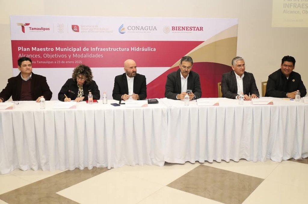 Cd. Victoria, 24 de enero 2025.- Para alinear a Victoria, la Capital de Tamaulipas, al Plan Nacional Hídrico 2024-2030, el presidente municipal Eduardo Gattás Báez asistió a la presentación del Plan Maestro Municipal de Infraestructura Hidráulica que coordinan el Estado y la Federación para impulsar proyectos sobre el cuidado y uso eficiente del agua.