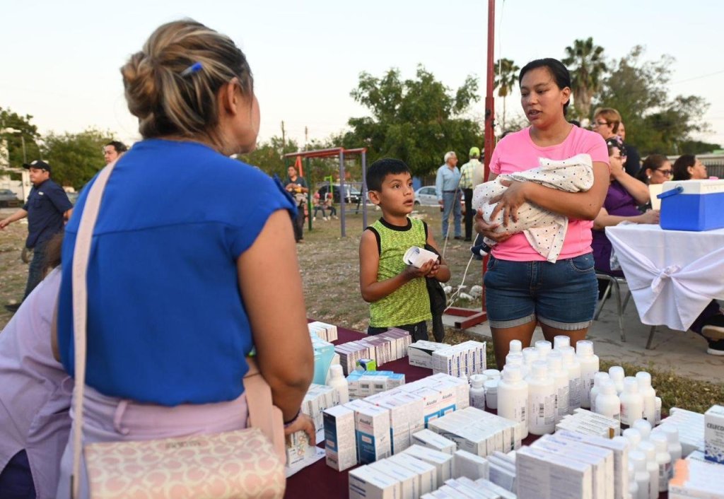 Cd. Victoria, 6 de febrero 2025. – Con dispensario médico, consultorio móvil, servicios, actividades lúdicas y deportivas, el presidente municipal de Victoria Eduardo Gattás Báez y presidenta del DIF Municipal Lucy de Gattás visitaron el ejido Guadalupe Victoria con el programa “Tardes en Familia”.