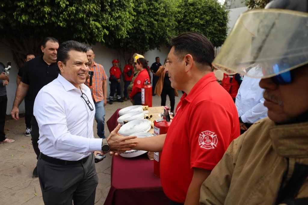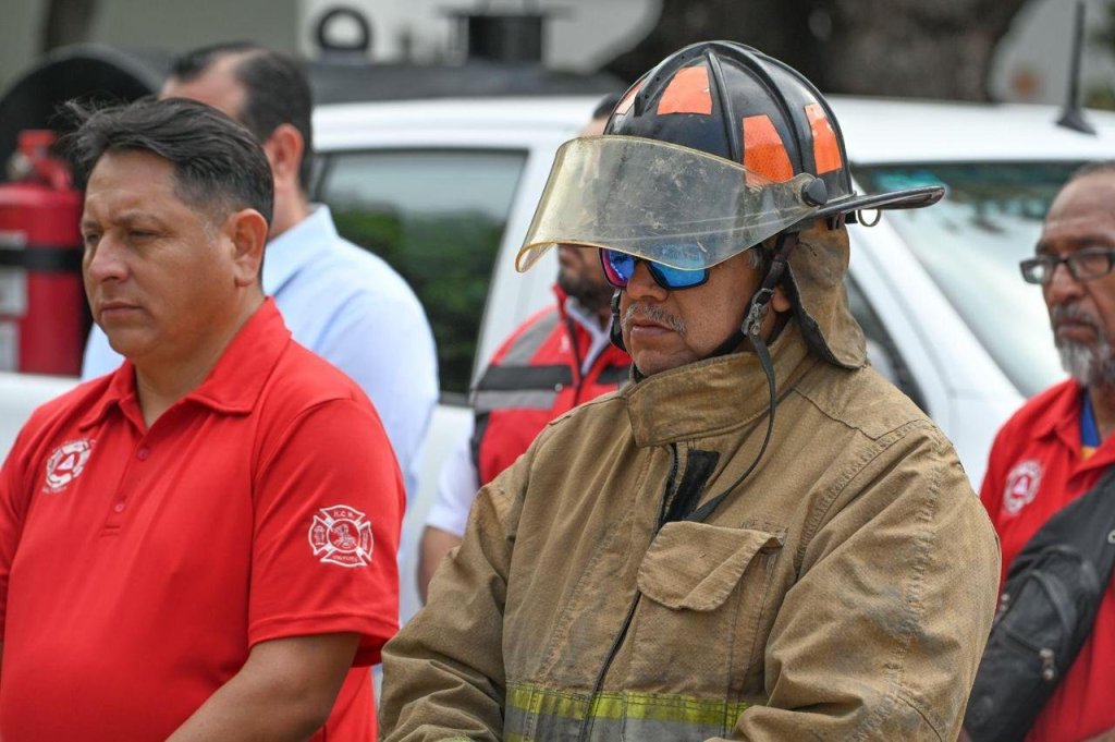 Livio Flores Rodríguez, director de Protección Civil del Municipio, acompañado del Secretario del Ayuntamiento Hugo Reséndez Silva y personal de bomberos, y agradeció el apoyo del alcalde capitalino para seguir fortaleciendo la corporación con más y mejor equipo de protección personal, atención de siniestros y rescate.