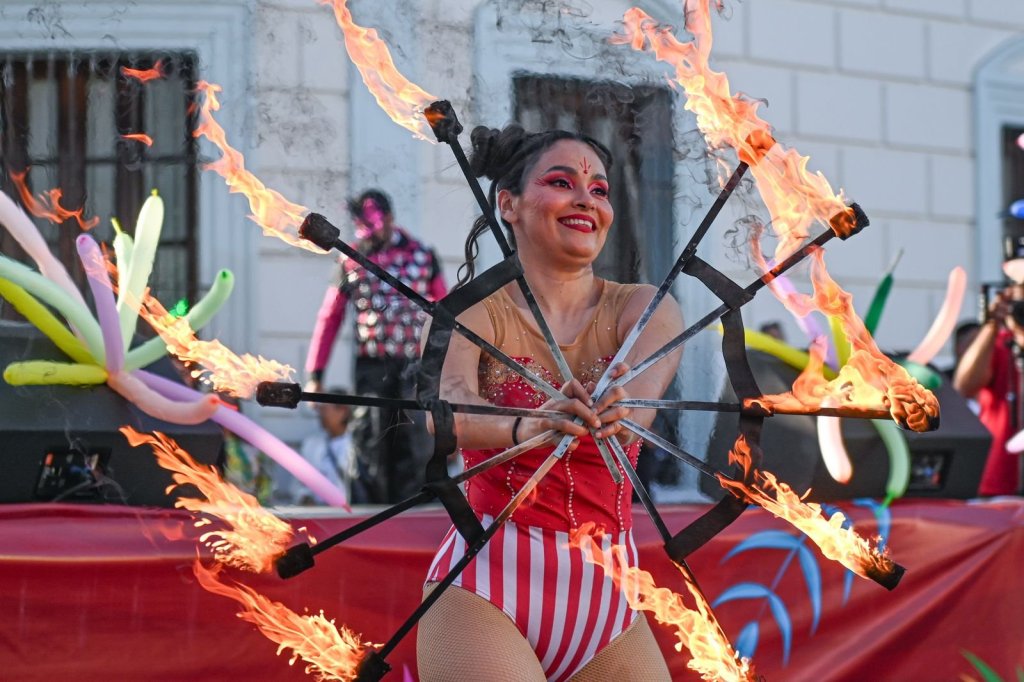 La fiesta popular, que reunió a más de 5 mil personas, fue ambientada por arlequines y 17 comparsas integradas por academias musicales, culturales e instituciones educativas que desfilaron por la avenida del 17 Te Quiero Más.