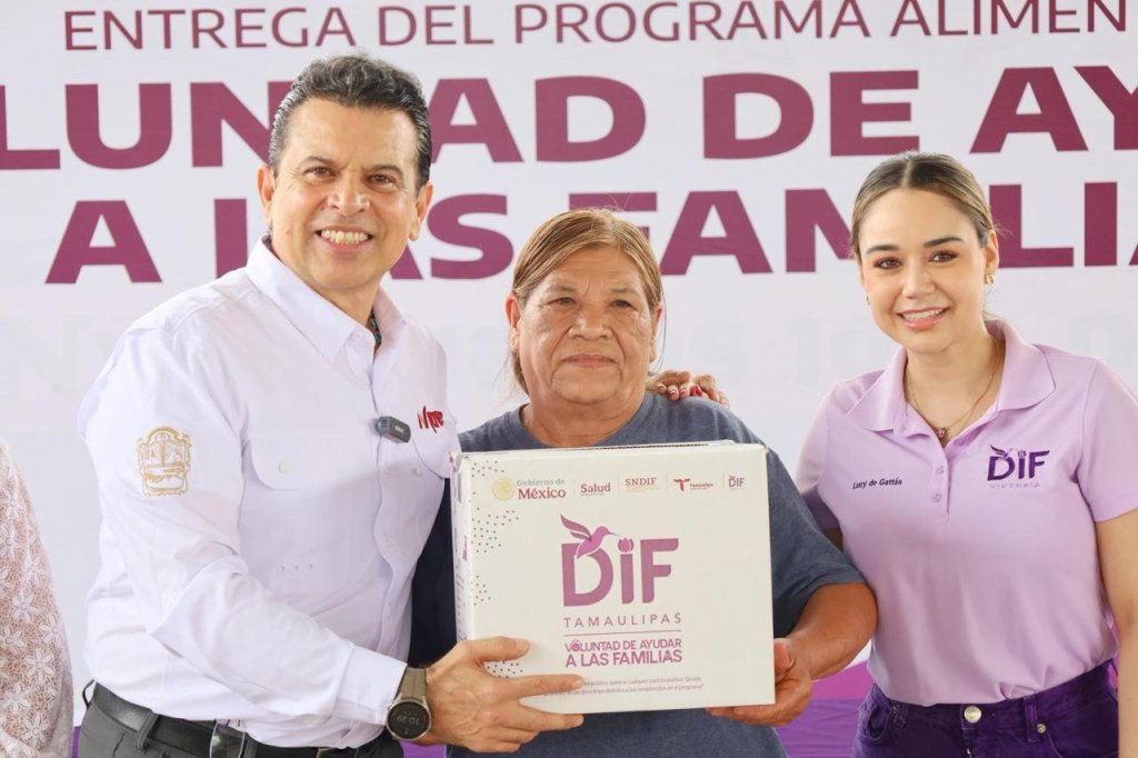 Cd. Victoria, 28 de marzo 2025.– Al afirmar que, en Victoria se trabaja con el gobernador Américo Villarreal y su esposa la Dra. María de Villarreal para transformar con hechos la vida de las familias victorenses, el alcalde Eduardo Gattás Báez y Lucy de Gattás, presidenta del DIF, llevaron la entrega de 800 apoyos alimentarios en el ejido La Misión.