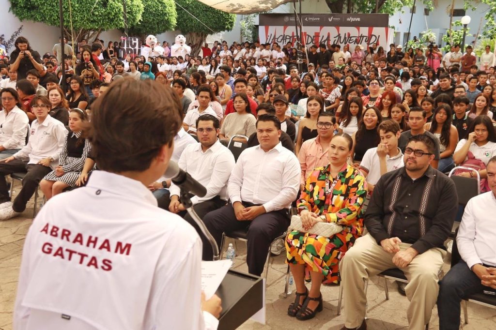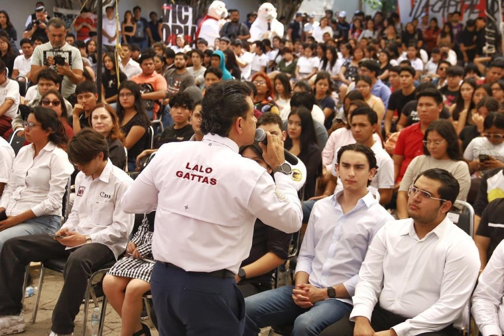 En el evento celebrado en la explanada de Presidencia Municipal, Gattás Báez aseguró ante alumnos de distintas instituciones educativas que, sí es posible cambiar las cosas con la participación de los jóvenes poniendo pasión, resiliencia y perseverancia, para gobernar y ocupar cargos públicos en el futuro.