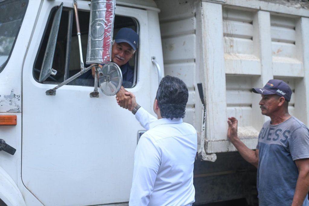 Acompañado del Secretario de Obras Públicas Eusebio Alfaro Reyna y el Coordinador de Protección Civil Municipal Livio Flores Rodríguez, verificó el avance de los trabajos de demolición y retiro inmediato del material para evitar afectación del afluente y su fauna.