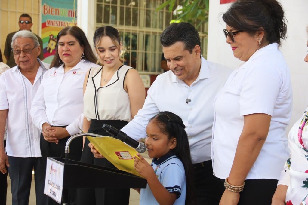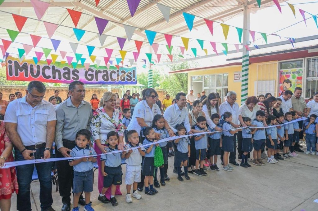 “Esta techumbre no es solo abrir una obra, es abrir un espacio digno para nuestras niñas y niños, la infancia merece respeto y condiciones dignas para crecer”, dijo Gattás Báez al destacar el trabajo en equipo que realiza con Lucy de Gattás, presidenta del DIF Municipal, que a través del sistema ofrece 21 mil desayunos escolares diarios.