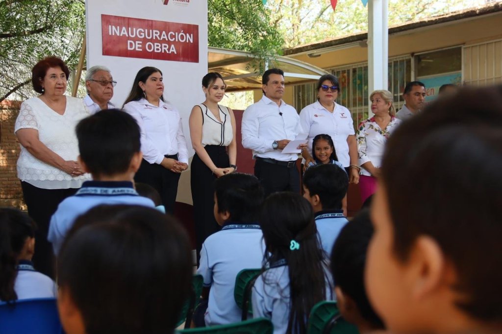 Cd. Victoria, 14 de mayo 2025. – Para seguir generando espacios educativos dignos, el presidente municipal de Victoria Eduardo Gattás Báez, inauguró este día la techumbre metálica en el Jardín de Niños América en beneficio de 172 alumnos para actividades cívicas, culturales y deportivas.