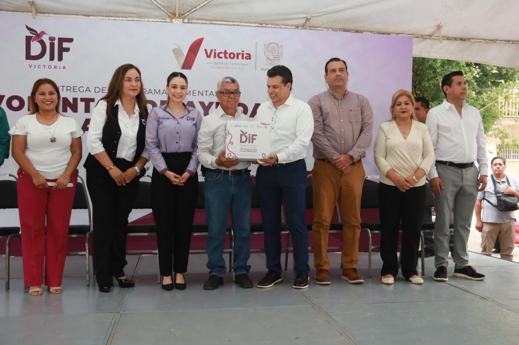 Cd. Victoria, 21 de mayo 2025. – Al asistir a la segunda entrega de apoyo alimentario del programa “Voluntad de Ayudar a las Familias”, el presidente municipal de Victoria Eduardo Gattás Báez reconoció a la presidenta del DIF Lucy de Gáttas y Damas con Voluntad por la vocación de servir a las familias que más lo necesitan.