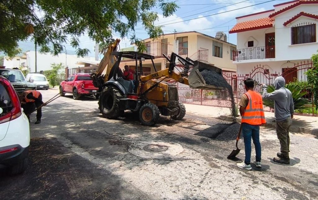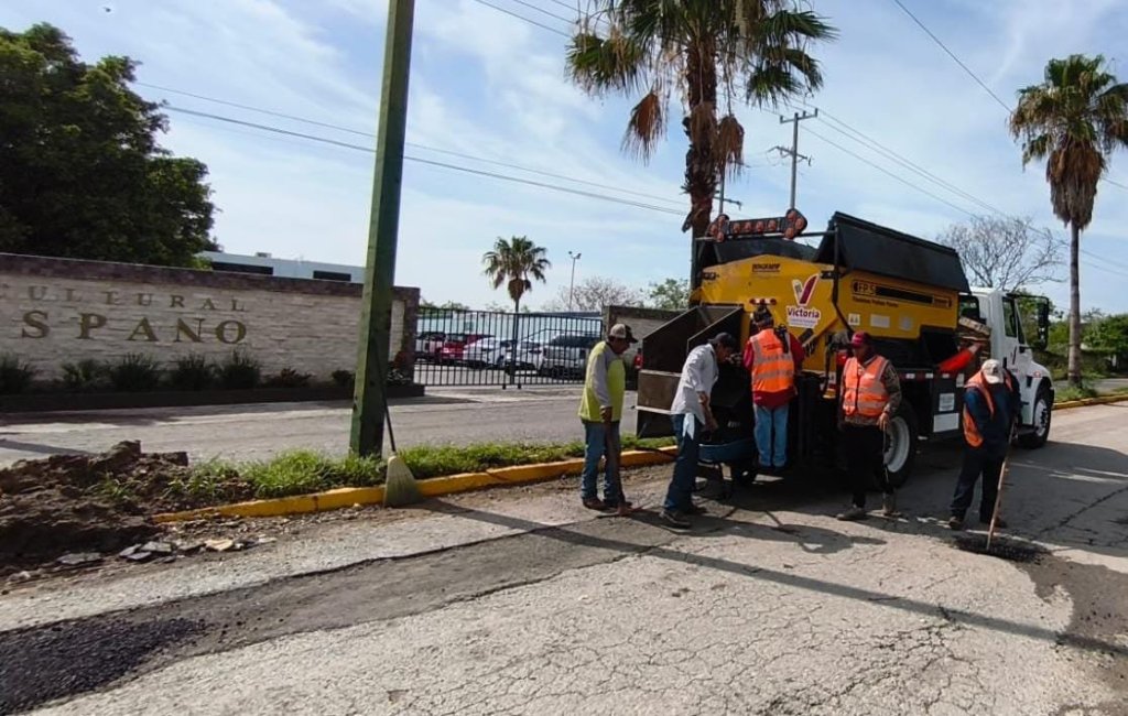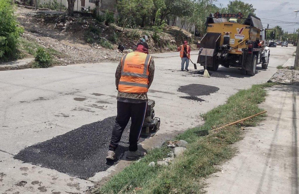 Con bacheo provisional, se cubrió carpeta asfáltica dañada por escurrimiento pluvial en calle Norberto Treviño Zapata de Fracc. La Salle, calle Camilo Manzo de la colonia Residencial, Alberto Carrera Torres de la colonia Victoria y calle Aldama, entre Acama y Huituhuim de la colonia Azteca.