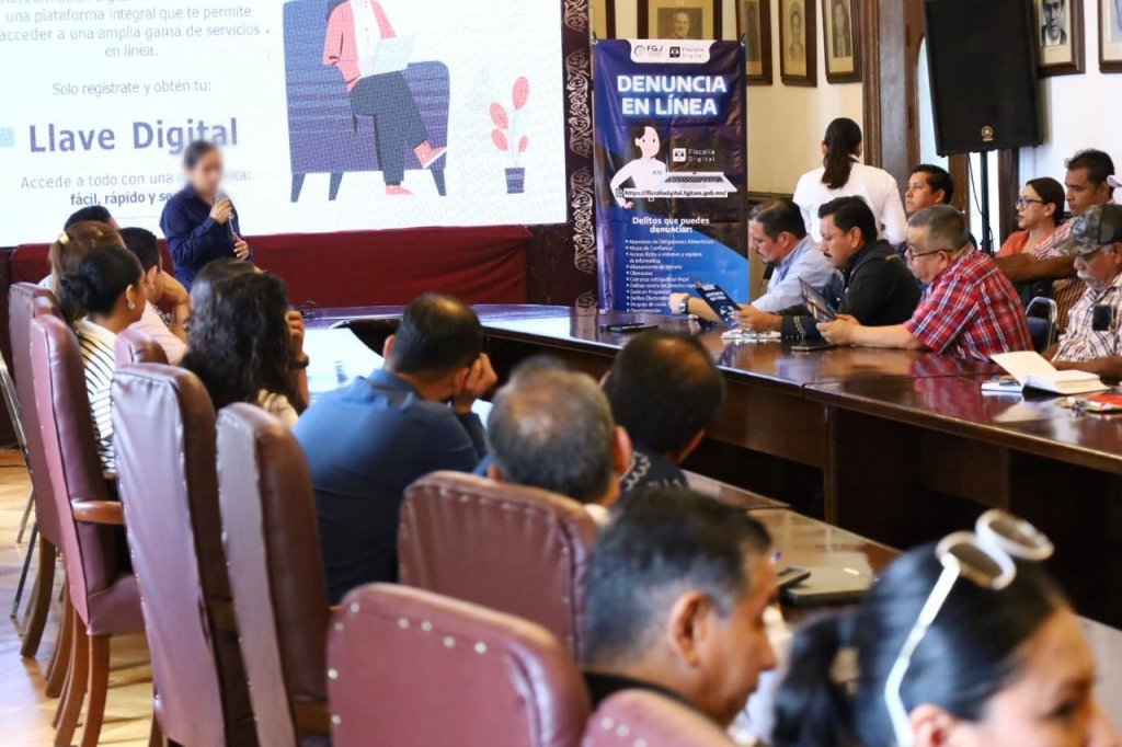 En el curso, acordado en la Mesa de Seguridad Municipal que preside el alcalde Eduardo Gattás Báez, personal de la FGJ impartió información sobre la plataforma digital que permite a cualquier ciudadano presentar una denuncia de cualquier lugar con acceso a Internet.