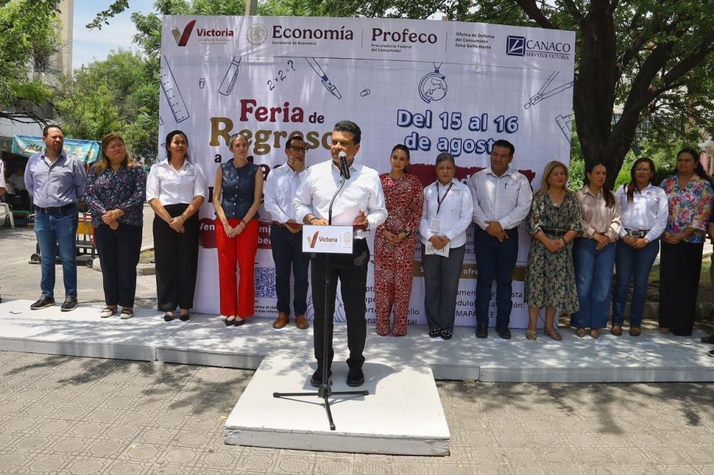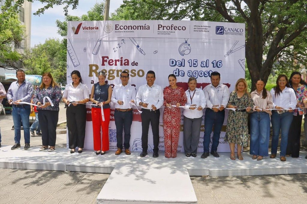Cd. Victoria, 15 agosto 2025. – Con una amplia exhibición de mochilas, útiles escolares, uniformes, equipos de cómputo, calzado y lentes, dio inicio la Feria de Regreso a Clases 2025, que organiza en apoyo a la economía familiar de 122 mil alumnos el Gobierno de Victoria, CANACO local, gobierno del Estado y Federal.