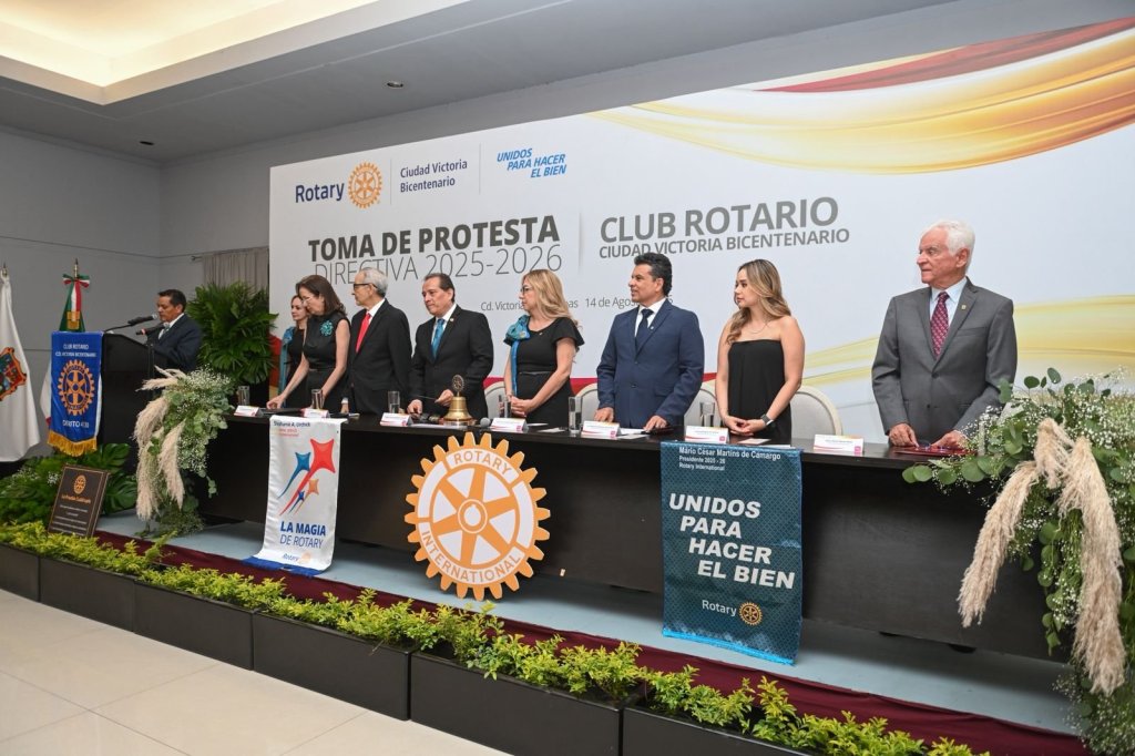 Cd. Victoria, 16 de agosto 2025. – Al asistir a la toma de protesta de la nueva mesa directiva del Club Rotario Ciudad Victoria Bicentenario, el presidente municipal Eduardo Gattás Báez reconoció y elogió su trabajo altruista que han realizado a lo largo de 15 años, en beneficio de la comunidad.
