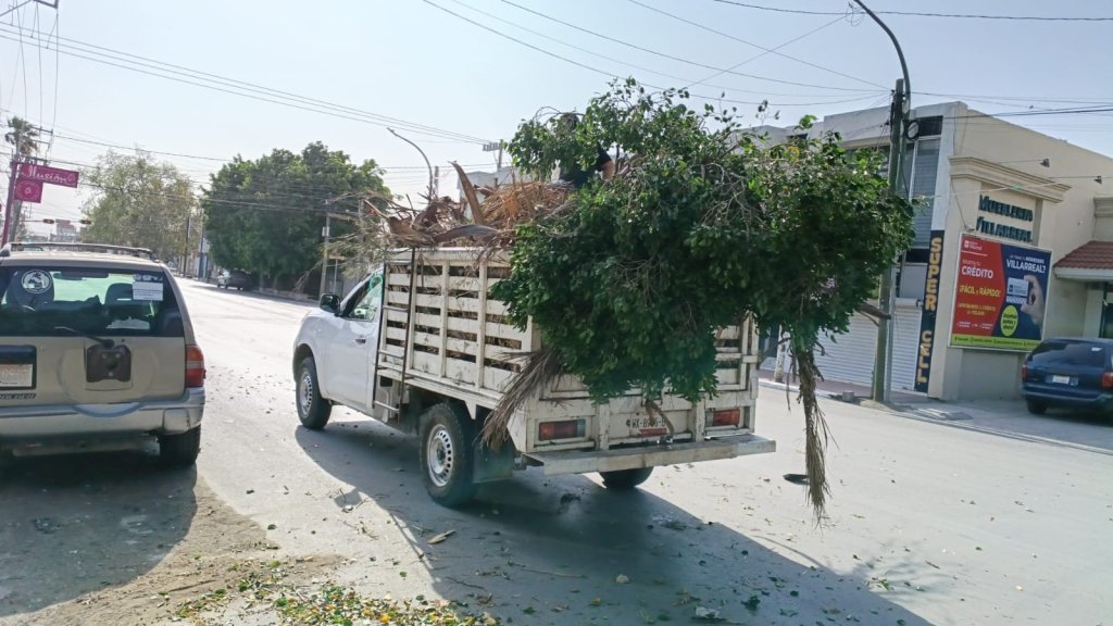 Por instrucción del alcalde Eduardo Gattás Báez, se procedió al retiro de ramas de árbol y palmeras para restablecer la vialidad en las calles Michoacán, 8 Matamoros, avenidas Del Valle, Teocaltiche, Hombres Ilustres, Carrera Torres y Tamatán.