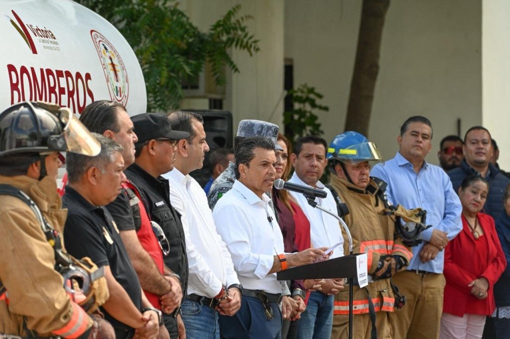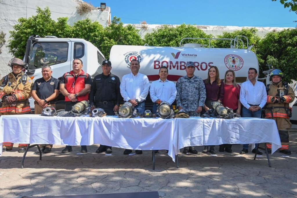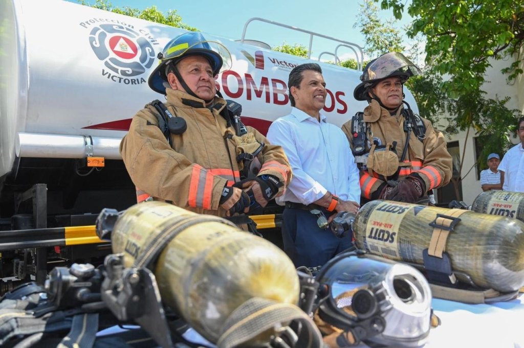 Cd. Victoria, 7 de abril de 2026. – El presidente municipal de Victoria, Eduardo Gattás Báez, entregó este día equipo especializado y camión cisterna a la Coordinación de Protección Civil y Bomberos para la atención rápida y eficiente de emergencias o siniestros que pongan en riesgo a la población.