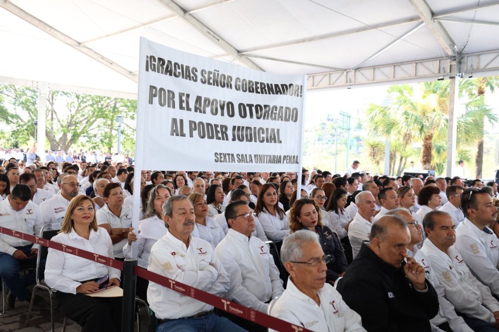 Durante su mensaje, el gobernador destacó que esta nivelación salarial impacta al 85% del personal operativo, con incrementos que van del 22% hasta por arriba del 100% en posiciones que se encontraban en mayor rezago. Subrayó que este esfuerzo responde a una visión de justicia con sentido humanista, orientada a reducir la brecha salarial y consolidar un Poder Judicial más sólido y cercano a la ciudadanía.